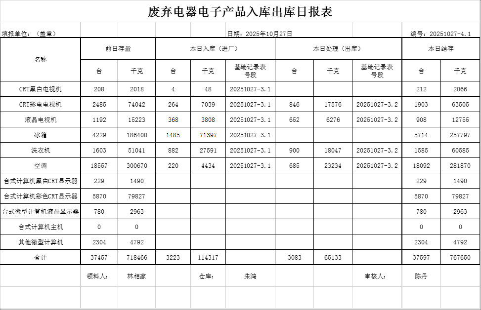 2025.10.27回收拆解统计表